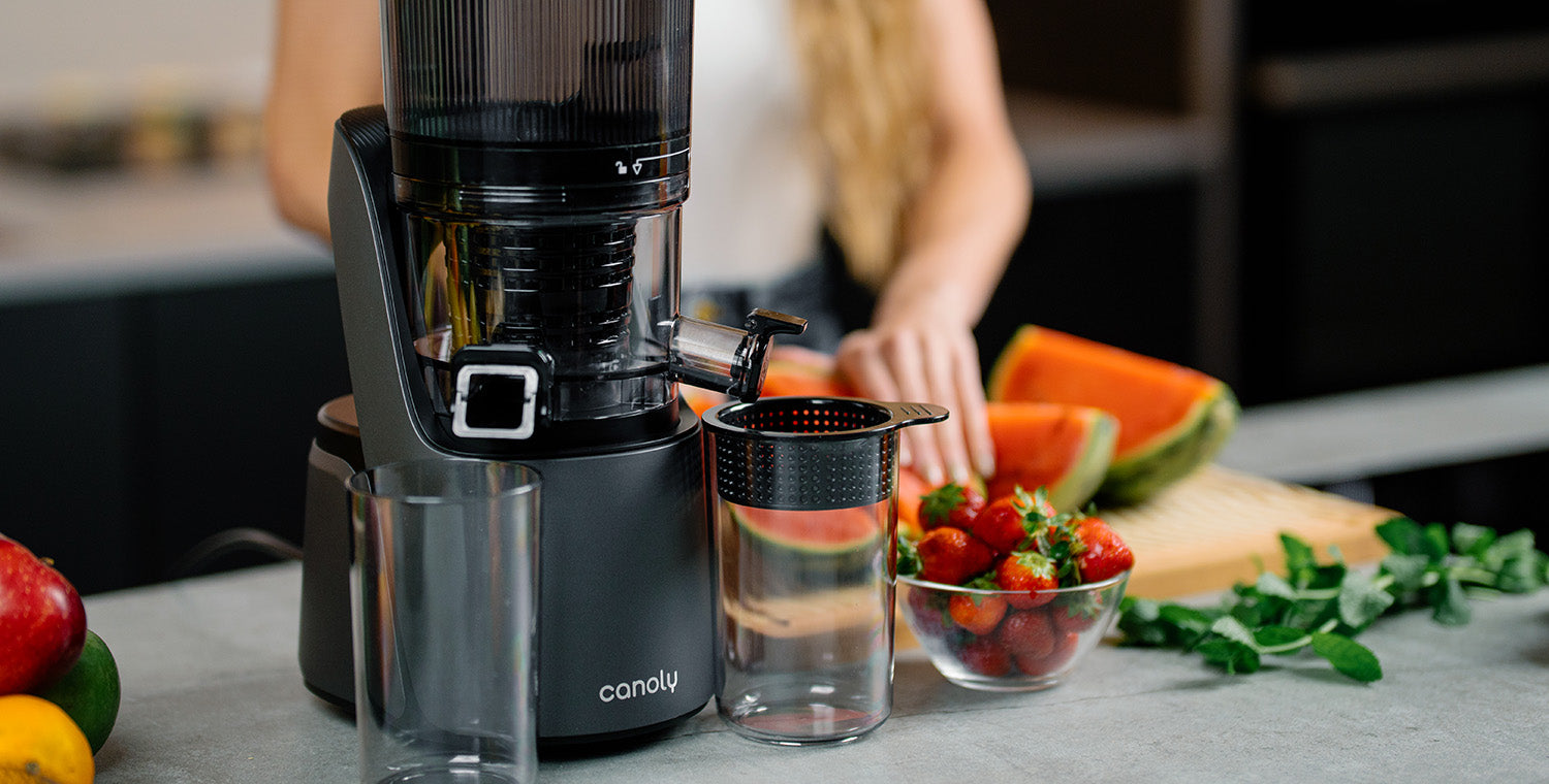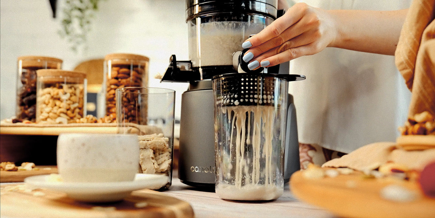 A CANOLY-C16 = Juicer + Sorbet Maker + Nut Milk Maker